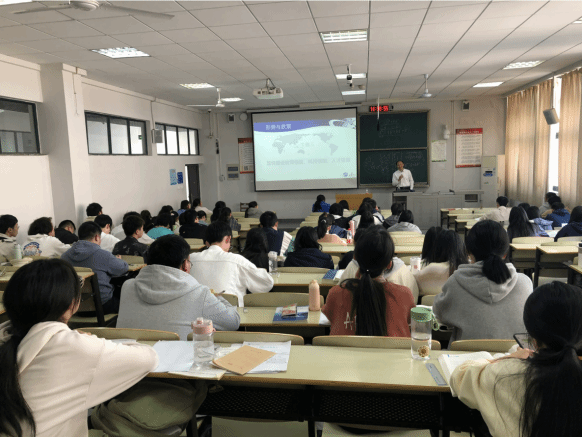 (通讯员 颜欣)为贯彻落实《教育部关于增强新时代高校“形势与政策”课建设的若干意见》精神,,,,,,,推动党政向导干部上讲台讲“形势与政策”课,,,,,,,11月20日下昼,,,,,,,副校长喻发全走进课堂、走近学生、走进思政课,,,,,,,为本科生作了题为《加速建设教育强国、科技强国、人才强国》的专题授课。。。。。。。
