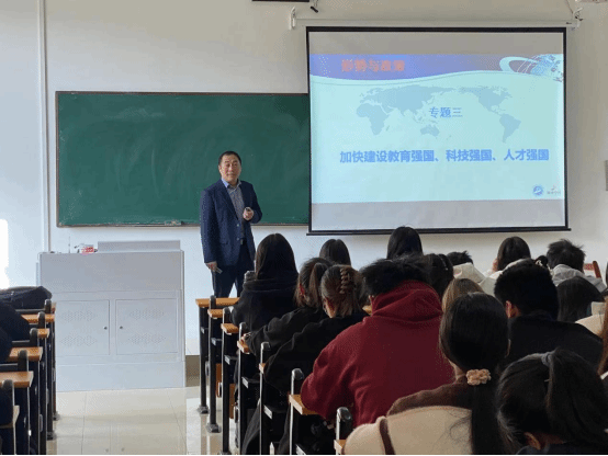(通讯员 徐肖艺)为贯彻落实《教育部关于增强新时代高校“形势与政策”课建设的若干意见》精神,,,,,推动党政向导干部上讲台讲“形势与政策”课,,,,,12月8日下昼,,,,,校党委常委敖荣军走进2023级应用化学专业学生的课堂,,,,,为本科生作了题为《加速建设教育强国、科技强国、人才强国》的专题授课。。。。。。。