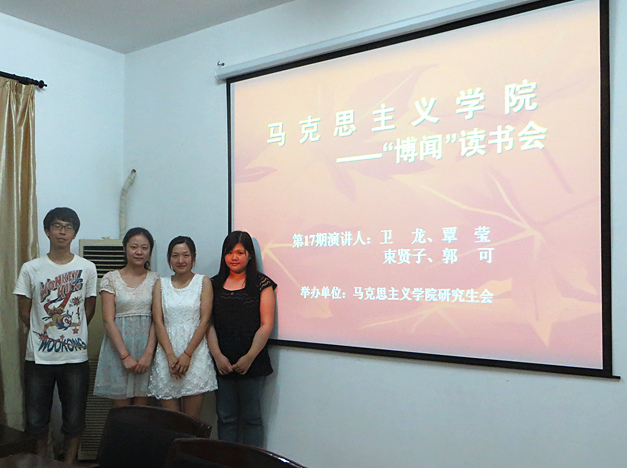 2013年06月19日晚,,,,,,,6731顶级娱乐“博闻”念书会在学院聚会室顺遂举行。。。。。。。。本期念书会由6731顶级娱乐研究生会主席李嘉仪、学术部部长孙梓毓主持,,,,,,,并组织学院研究生起劲加入。。。。。。。。此次念书会的主讲人划分是来自我院的卫龙、覃莹、束贤子、郭可四位同砚。。。。。。。。四位同砚以“中国梦”为主题举行了富厚生动的报告,,,,,,,赢得了在座同砚的赞许和掌声。。。。。。。。