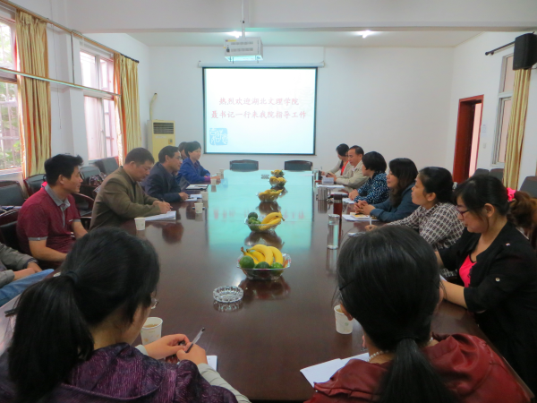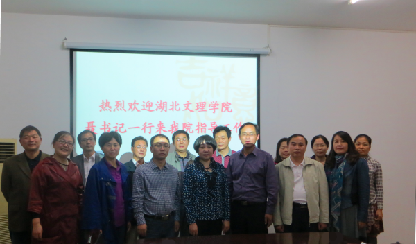 9月22日,,,,,,,,湖北文理学院思政部主任、经政学院党委书记聂军一行十一人到我院考察交流。。。。。学院党委书记吴秋凤、院长舒先林、副院长何景春、基础教研室贺新芳副教授、原理教研室主任蒋姣蓉副教授及办公室职员加入了交流运动并召开了座谈会。。。。。