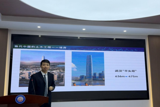 其次,,,,,,,徐丰教授以时间为主线,,,,,,,从历史维度划分叙述了古代与近代中国的土木匠程生长脉络。。。。。。。。他通过展示差别时代的标记性修建,,,,,,,如河姆渡修建遗址、都江堰、秦长城、武汉租界修建等,,,,,,,让在场学生深刻明确土木匠程在历史长河中取得的伟大成绩。。。。。。。。