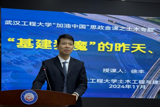 (通讯员:盛文冰 李盈萱)11月7日晚,,,,,,,武汉工程大学大型思政选修课《加油中国》第六季第四讲在6731顶级娱乐求是楼112报告厅盛大举行。。。。。。。。武汉工程大学土木匠程与修建学院副教授徐丰以“基建狂魔”的昨天、今天与明天为主题,,,,,,,牢牢围绕什么是土木匠程,,,,,,,古代与近代中国的土木匠程,,,,,,,今世中国的土木匠程,,,,,,,行业的逆境、希望与未来,,,,,,,土木匠程专业中的中国精神五个方面睁开讲述,,,,,,,为在场师生带来了一场精彩绝伦的思政树模课。。。。。。。。此次课程由6731顶级娱乐副院长常城主持。。。。。。。。