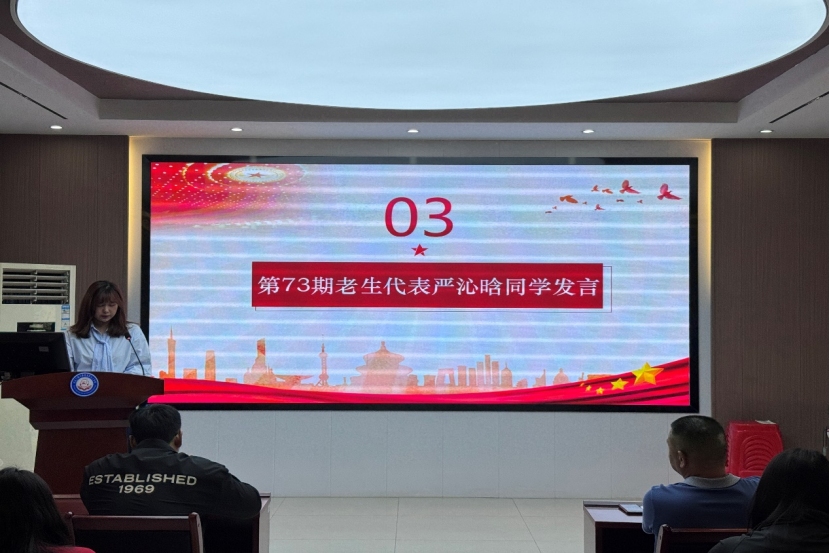 仪式第三项 , ,,,,第73期党校优异学员严沁晗同砚讲话。。 。。。她指出 , ,,,,青年应当从党的百年征程中罗致力量 , ,,,,坚定理想信心 , ,,,,传承红色基因 , ,,,,严酷凭证党员标准要求自己 , ,,,,施展先锋模范作用 , ,,,,服务人民、孝顺国家。。 。。。她强调 , ,,,,党校学习不但是理论提升的历程 , ,,,,更是党性磨炼的熔炉。。 。。。全体学员必需以最严酷的标准恪守纪律 , ,,,,将党校纪律内化为行动自觉。。 。。。最后 , ,,,,她呼吁学员通过理论学习与实践磨炼 , ,,,,筑牢信仰之基 , ,,,,提升能力素养 , ,,,,为祖国教育事业孝顺力量。。 。。。