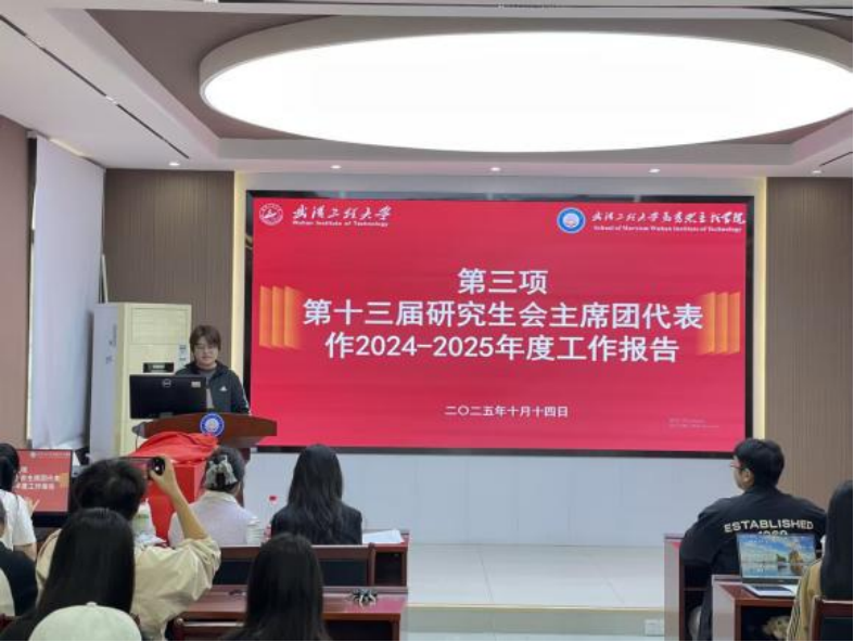 第十三届研究生会主席团代表李盈萱作事情报告,,,,,,,,系统回首了已往一年研会在头脑引领、学术立异、文体运动、权益服务等方面的事情效果。。。。。。报告指出,,,,,,,,研会通过举行“红心向党”红色宣讲团、“乡音课堂”进下层等品牌运动,,,,,,,,推动理论学习与实践育人深度融合;;;;;;;依托“求是论坛”“博闻念书会”等平台,,,,,,,,营造浓重学术气氛,,,,,,,,助力研究生科研能力提升。。。。。。