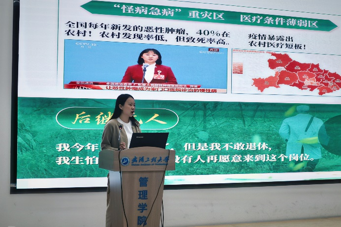 “医路偕行”实践队代表徐嘉婧围绕下层医疗与AI赋能睁开汇报,,,,,分享团队深入触摸下层医疗脉搏的实践履历,,,,,以及探寻AI赋能医疗路径的探索效果,,,,,彰显青年学子的专业实践与立异思索。。。。。