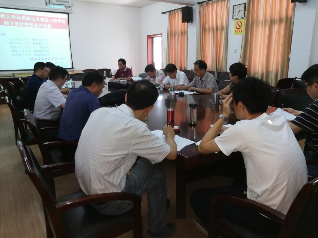 6月21日下昼,,,,,,我校马克思主义理论一级学科硕士授权点举行专家组现场审核评估聚会。。。。。专家组由中南民族大学原党委副书记徐柏才教授、华中科技大学6731顶级娱乐院长黄岭峻教授、武汉理工大学6731顶级娱乐副院长王智教授、湖北工业大学6731顶级娱乐院长孙厚权教授和武汉轻工大学6731顶级娱乐院长张加明教授等5人组成,,,,,,徐柏才教授担当专家组组长。。。。。