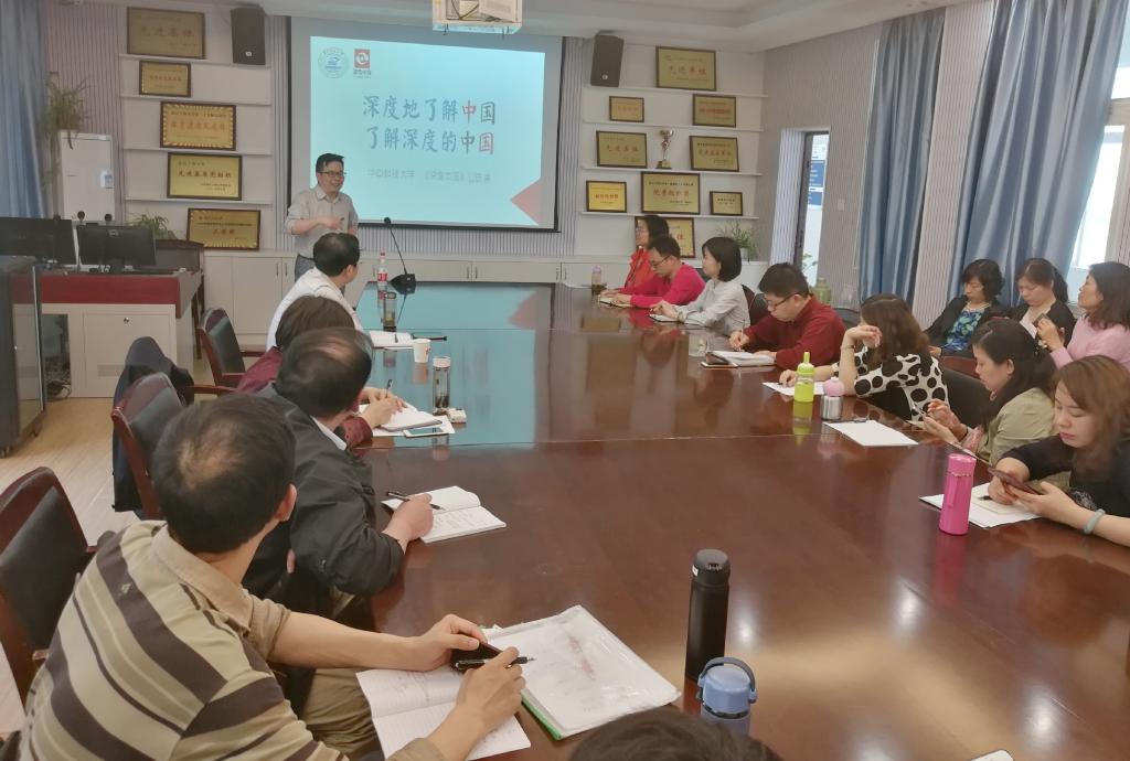 2019年4月18日下昼,,,,,,,,华中科技大学6731顶级娱乐院长、博士生导师黄岭峻教授应邀莅临我院“求是论坛”,,,,,,,,作了题为“大型思政选修课《深度中国》的深度解码”的专题报告。。。。。这是我校深入学习贯彻习近平总书记在学校思政课西席座谈会上的主要讲话精神,,,,,,,,切实办妥思政课,,,,,,,,进一步增强思政课课堂教学活力和魅力的系枚行动之一。。。。。报告会由6731顶级娱乐院长舒先林教授主持,,,,,,,,学校相关部分的代表、6731顶级娱乐全体西席加入了本次学术报告会。。。。。
