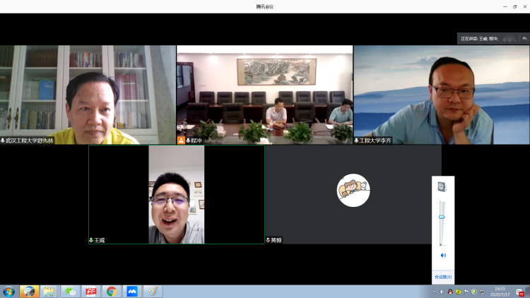 7月17日下昼,,,,,,,,湖北省委宣传部讲师团“理论热门面扑面”树模点建设专家组单位武汉工程大学团结鄂州市庙鹅岭股份经济合作社召开了一次云视频专题调研座谈会。。。。。树模点建设专家组组长、我院党委书记舒先林教授,,,,,,,,青年西席李齐博士,,,,,,,,王威博士以及18级硕士研究生黄橙,,,,,,,,以及庙鹅岭股份经济合作社党委书记、董事长王安平,,,,,,,,党委副书记、副董事长邵国顺和党委委员、董事邵超等加入了本次视频座谈会。。。。。座谈会由王威博士主持。。。。。