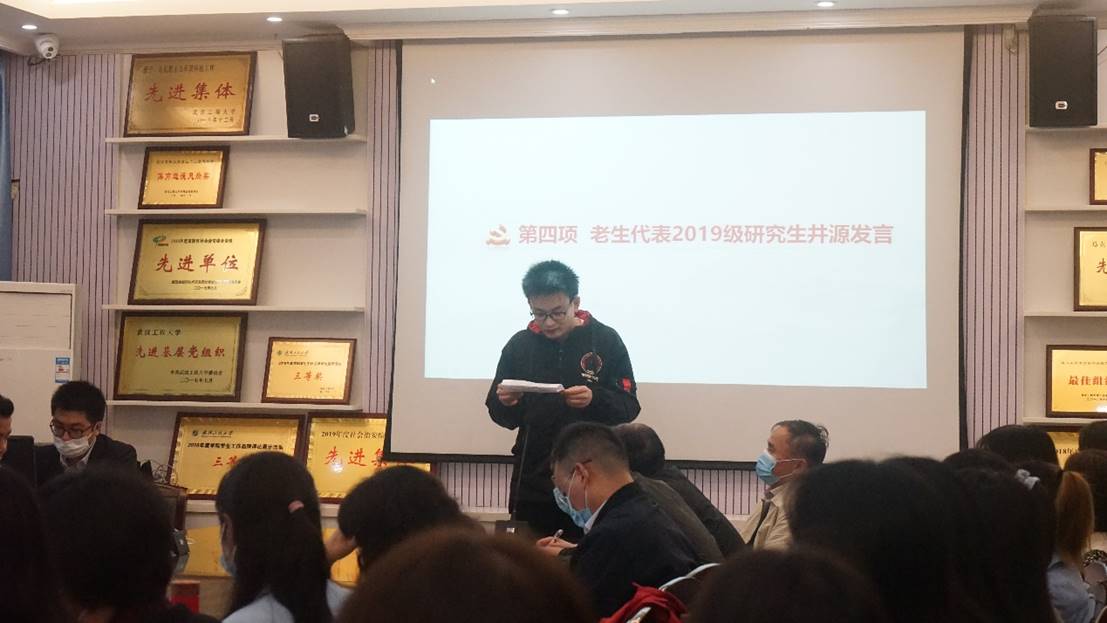 2019级井源同砚代表老生讲话 。。。。 。。。。他向新同砚表达了优美祝福 ,,,,,希望各人能使用好课堂、多念书、起劲加入运动、注重综合素质的提升 ,,,,,掌握大好时光 ,,,,,高昂有为 。。。。 。。。。