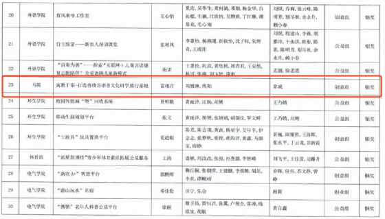马院21级硕士研究生雷翊君向导硕士研究生刘雅琳、周阳,,,,,以寓教于乐—打造善缘谷孝善文化研学旅行基地为主题,,,,,旨在响应墟落振兴政策,,,,,开发墟落旅游项目,,,,,打造咸宁地区“研学旅行”特色基地,,,,,该项目在青年红色筑梦之旅赛道荣获校级银奖。。。。。。。。(审稿人:常城)