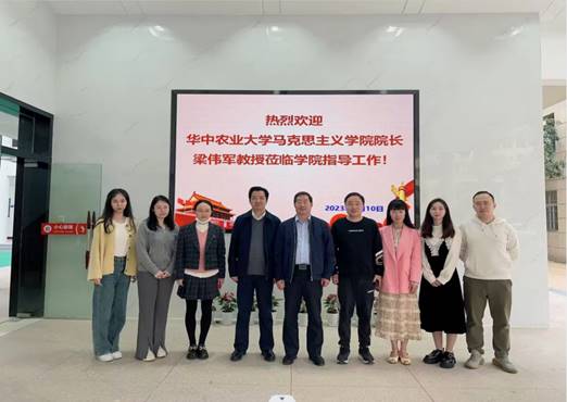 图为梁伟军教授、曹胜亮院长与部分师生合影
