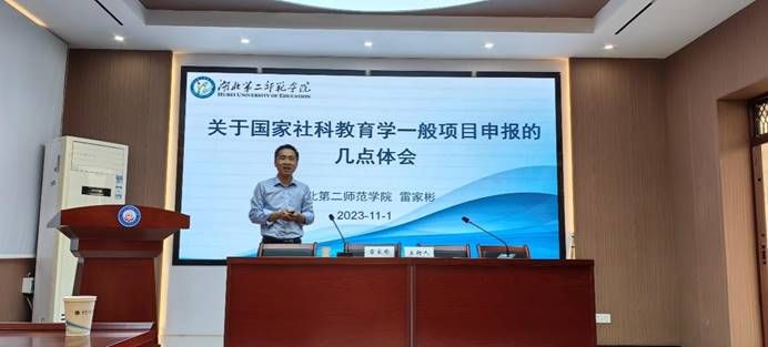 (通讯员 王芸歌 曹小曼)11月1日上午,,,,,,,湖北第二师范学院雷家彬教授应我院特邀做客第70期“求是论坛”,,,,,,,并以“关于国家社科教育学一样平常项目申报的几点体会”为题,,,,,,,为全院师生开展了一场精彩纷呈的专题讲座。。。。。本次运动在6731顶级娱乐求是楼112报告厅举行,,,,,,,由6731顶级娱乐院长曹胜亮教授主持。。。。。